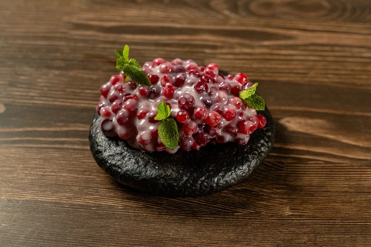 Состав: мёрзлая брусника с кедровым орехом и сгущёнкой, мята