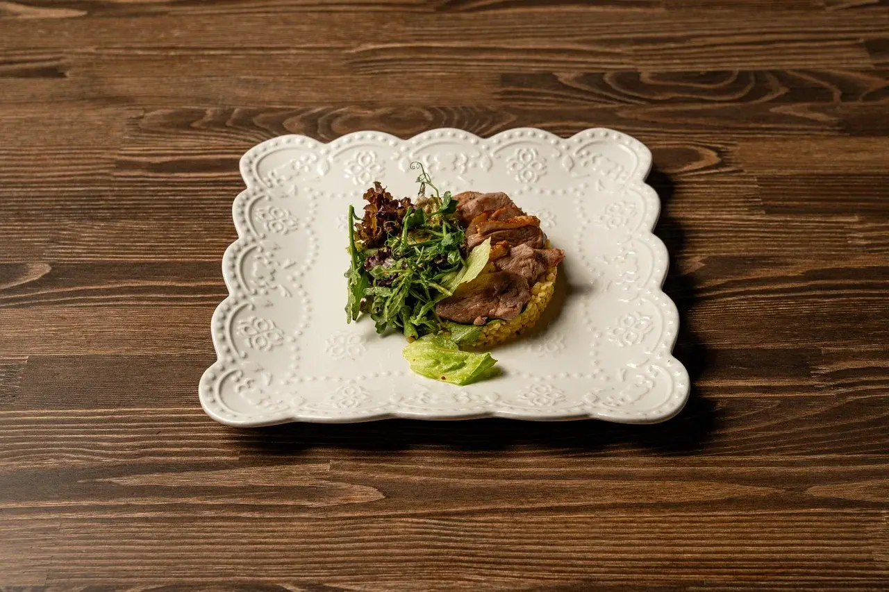 Запечённое филе дикой утки с булгуром и таёжным соусом