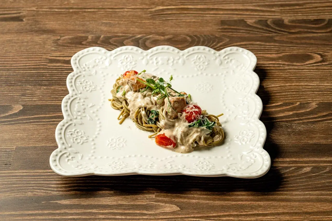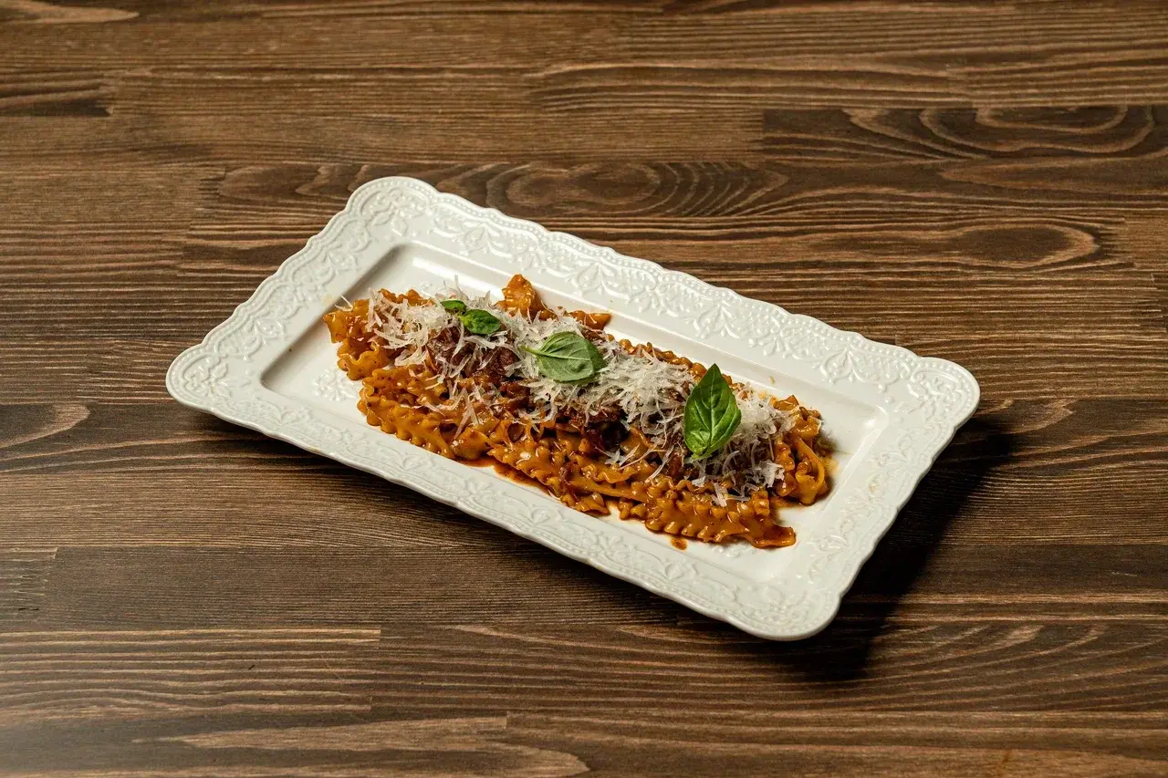 Состав: макароны, говяжьи щёки, квасное сусло, пармезан, соль, микрозелень